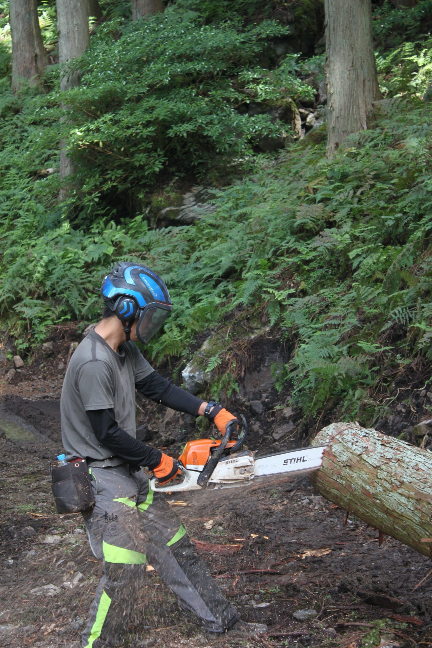 主な仕事は、間伐や伐採、植林、下草刈り、枝打ちなどの森林管理になります。